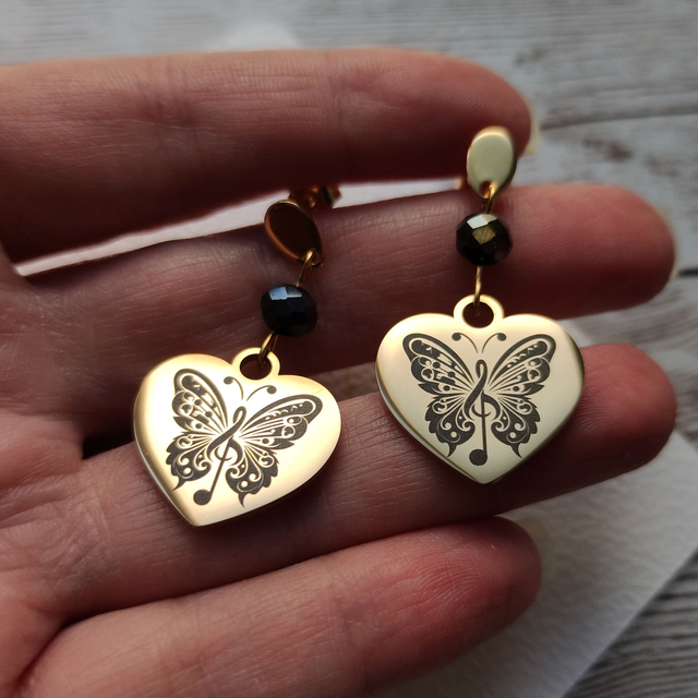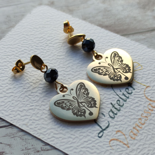 L'Envol Mélodieux : Boucles d'Oreilles Cœur & Papillon Gravé