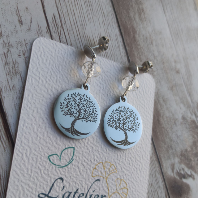 Boucles d'oreilles "Arbres de vie" gravés argentés
