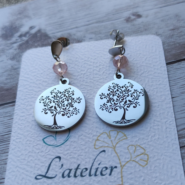 Boucles d'Oreilles Sérénité – Acier Inoxydable & Cristal Rose