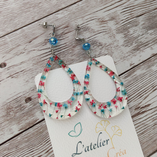 Éclat Sauvage : Boucles d'Oreilles Goutte en Transparence, Fleurs de Carotte