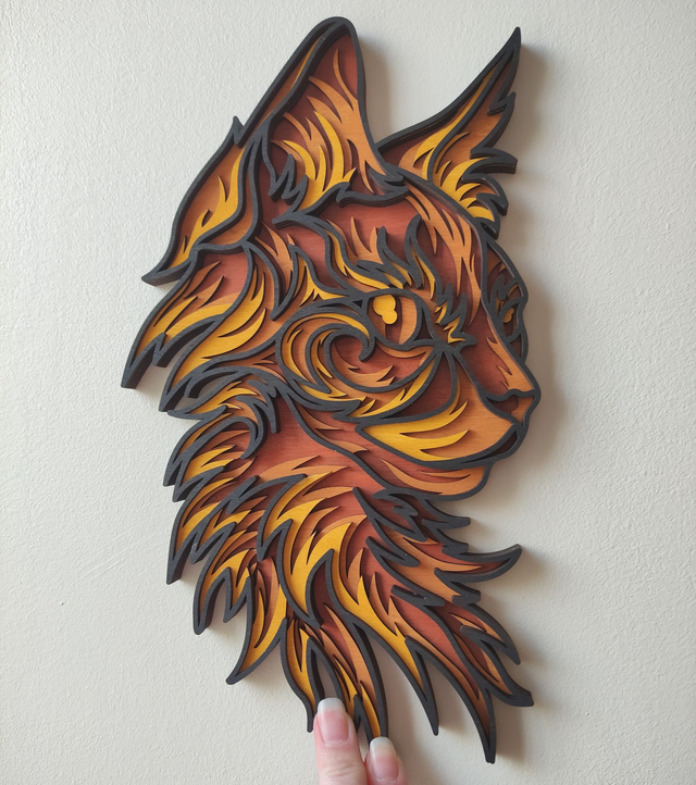 Chaque création est une sculpture en bois à Effet 3D : elle se compose de quatre couches de bois découpées et superposées avec délicatesse, donnant vie à la forme du chat. Ces couches sont ensuite peintes à la main dans les couleurs que vous choisissez, assurant un produit parfaitement adapté à votre intérieur.