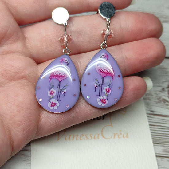 🌸 Boucles d'Oreilles Goutte Flamant Rose 🌸